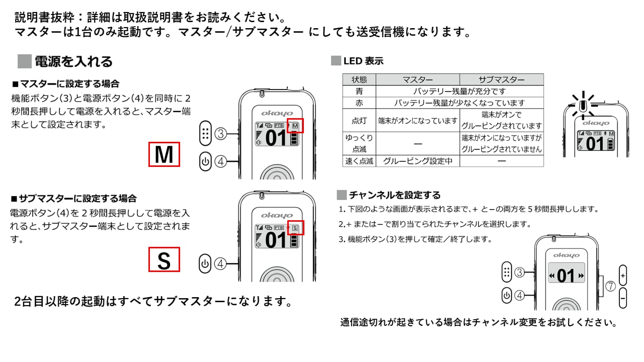 ※別途、充電ケーブル・出力用スピーカー・接続AUX3極ケーブルはご用意ください。