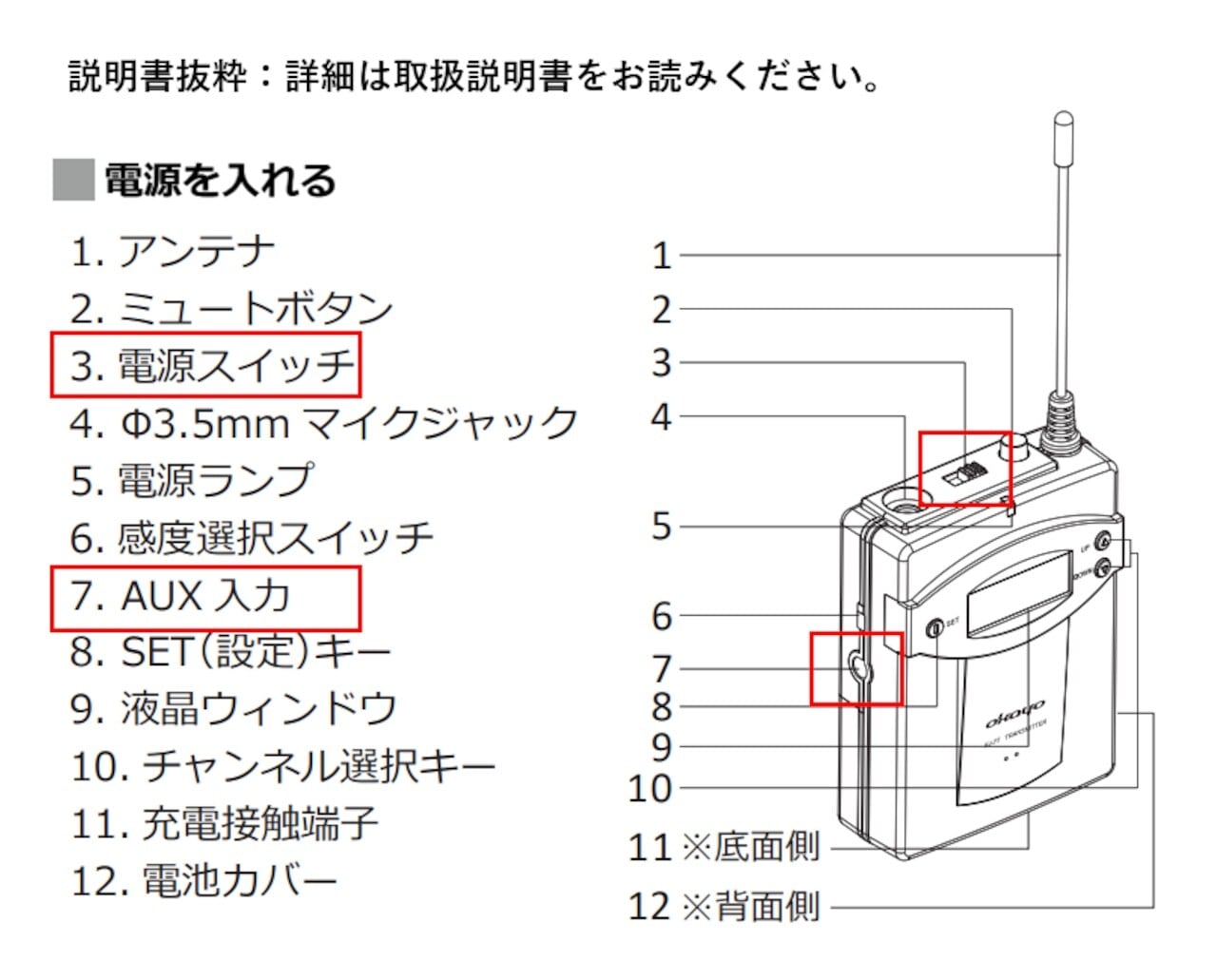 ・出力端子:Φ3.5 AUX 他スピーカーへの接続にご利用いただけます。