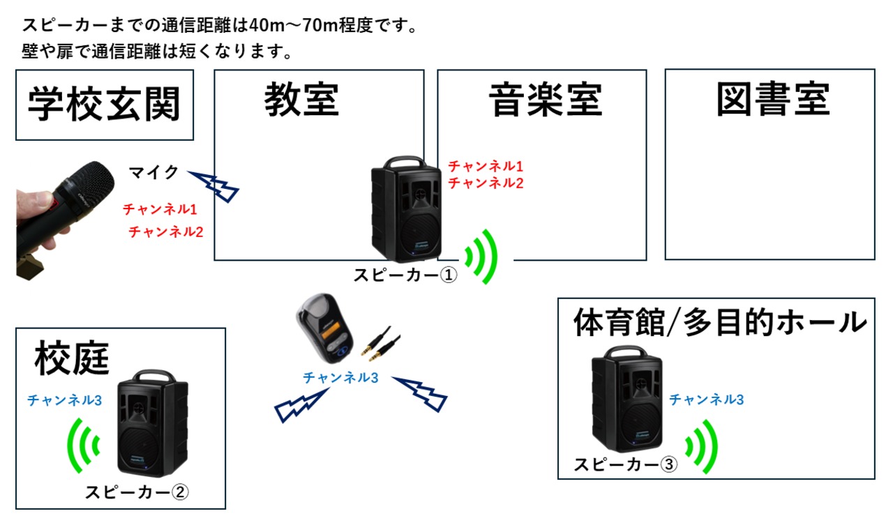 学校玄関・下駄箱・事務室などの受付 から、利用している各教室や校庭・中庭・多目的ホール・体育館などにマイクから一括で呼び出しで業務改善ができます。