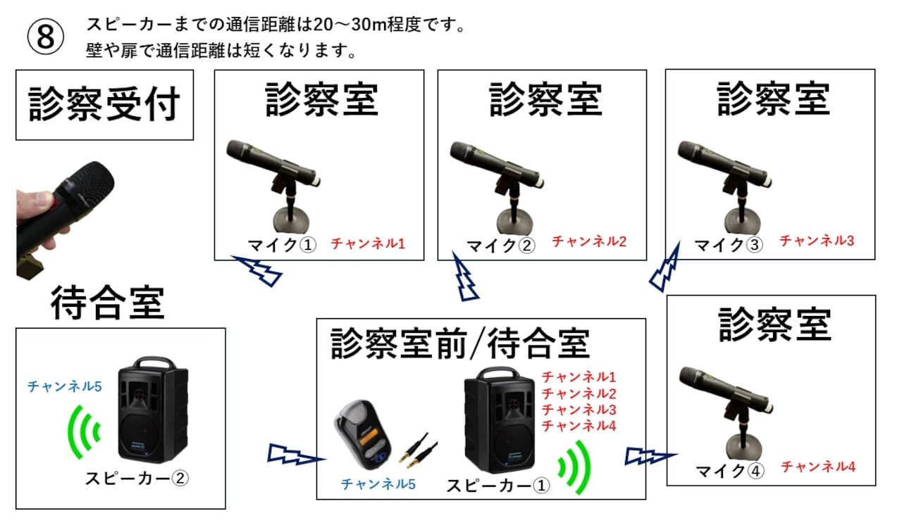 20m 病院待合室お呼び出し無線マイクシステム マイク4本対応 / GPA-680D2
