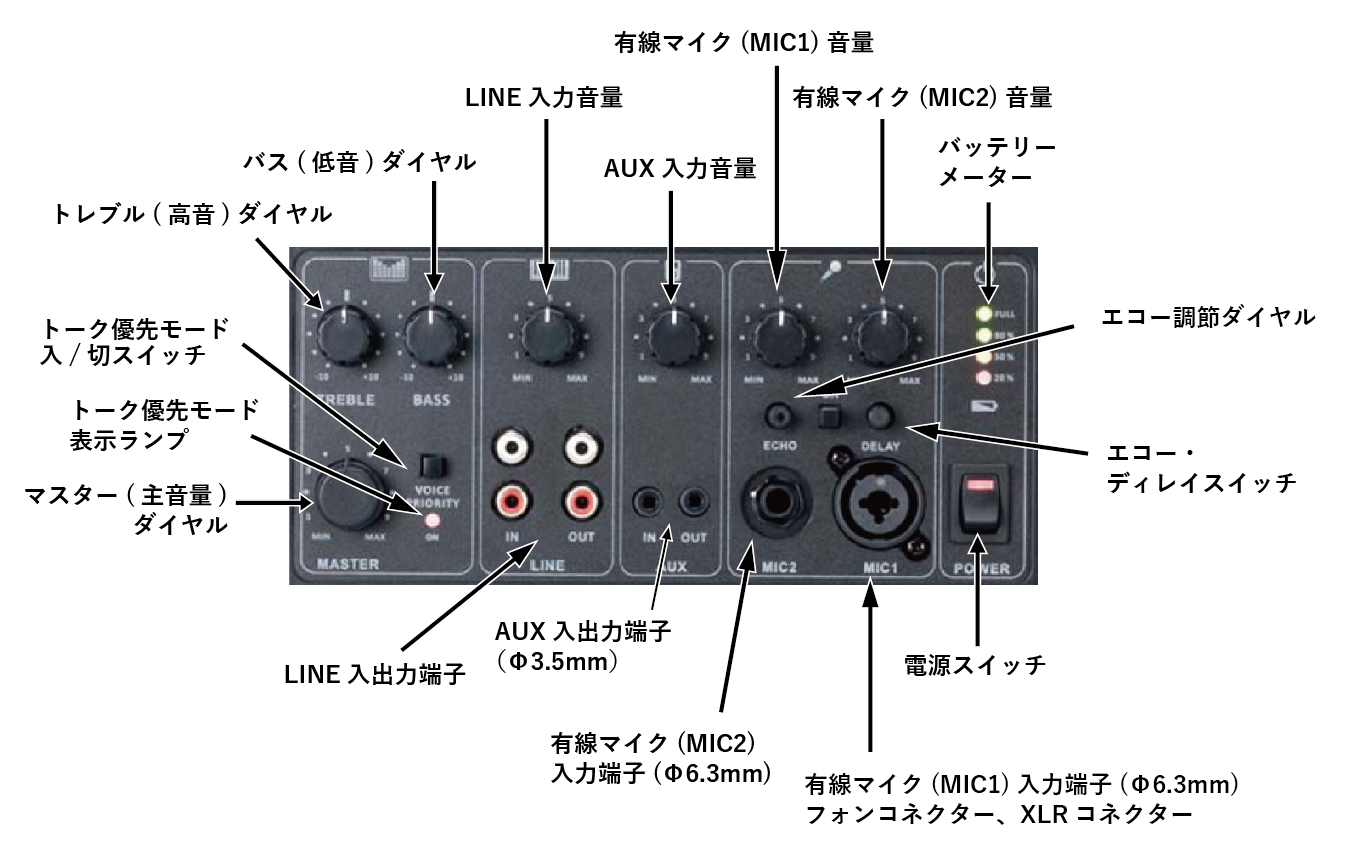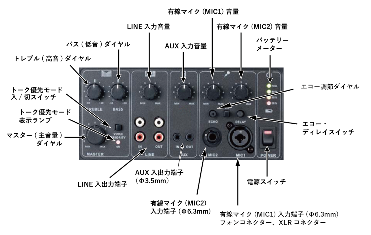 ・マイク端子:フォーン6.3Φ、コンボジャック(フォーン6.3Φ・XLR)